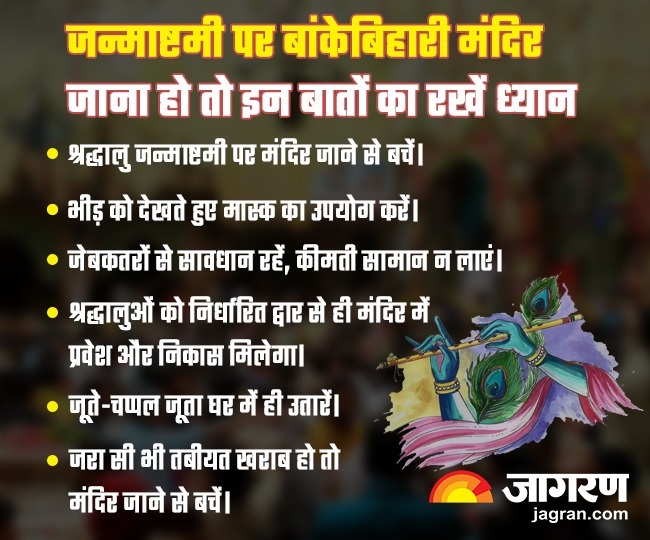 Krishna Janmashtami 2023: जागरण संवाददाता, मथुरा | श्रीकृष्ण जन्माष्टमी (Krishna Janmashtami 2023) पर बांकेबिहारी मंदिर (Banke Bihari Temple Mathura) में श्रद्धालु अपने साथ बुजुर्ग, बच्चे और दिव्यांगजन को न लाएं।
