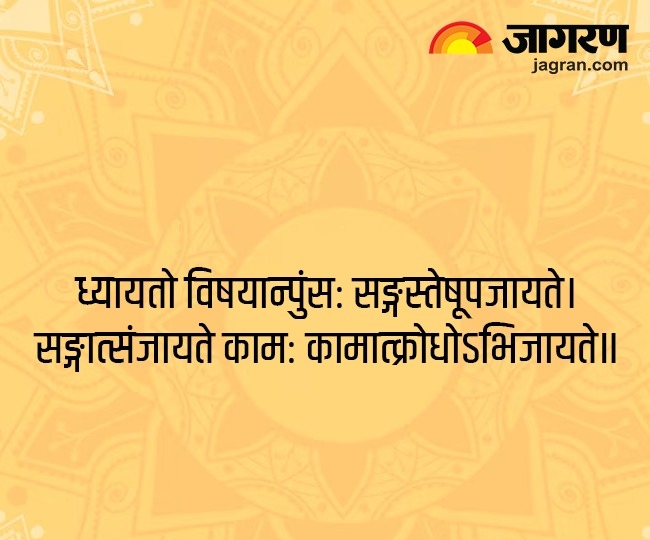 इस श्लोक में भगवान श्री कृष्ण अर्जुन को समझाते हुए कहते हैं कि किसी भी वस्तु के बारे में सोचते रहने से मनुष्य को उनसे लगाव हो जाता है। इससे उनमें इच्छा पैदा होती है और उसमें बाधा आने से क्रोध की उत्पत्ति होती है। इसलिए कोशिश करें कि किसी चीज के लगाव से दूर रहते हुए कर्म में लीन रहा जाए।