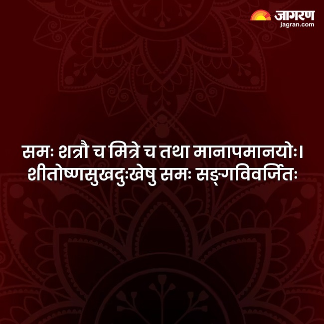 भगवत गीता के इस श्लोक में भगवान श्री कृष्ण कहते हैं कि जो व्यक्ति शत्रु और मित्र में, मान और अपमान में समान भाव से स्थित रहता है, जो सर्दी और गर्मी में, सुख और दुख आदि द्वंद्वों में भी समान भाव से रखता है। साथ ही जो बुरी संगति से दूर रहता है, वह मेरा प्रिय भक्त है।