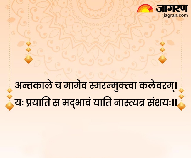 जगत के पालनहार भगवान श्रीकृष्ण पवित्र ग्रंथ 'गीता' के आठवें अध्याय के पांचवें श्लोक में अपने शिष्य अर्जुन से कहते हैं- हे कौन्तेय! जो पुरुष अंतकाल में मेरा स्मरण करते हुए शरीर का त्याग करता है, वह निश्चय ही मेरे स्वरूप को प्राप्त करता है। इसमें कोई संदेह और संशय नहीं है।