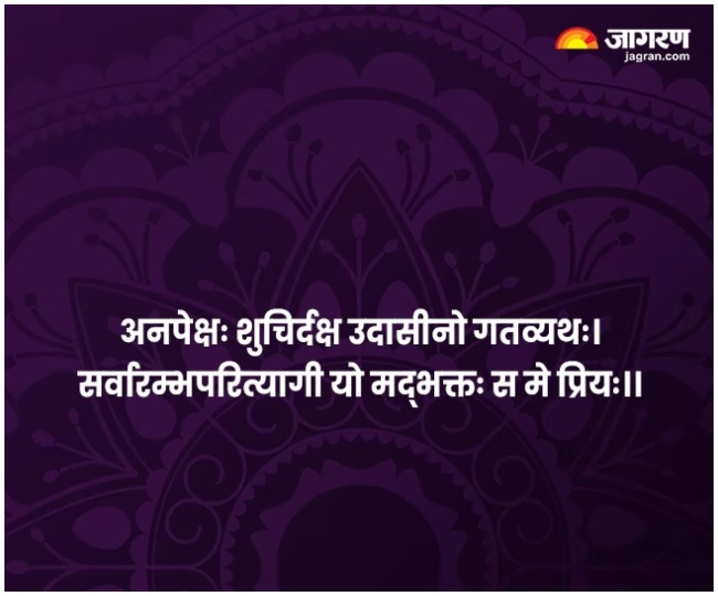 भगवत गीता के 12 अध्याय के 16वें श्लोक में भगवान श्री कृष्ण कहते हैं कि जो मनुष्य आकांक्षाओं से रहित है, बाहर-भीतर से पवित्र, दक्ष, उदासीन, व्यथा से रहित और सभी आरम्भों का त्याग करने वाला है, वह मेरा भक्त मुझे प्रिय है।