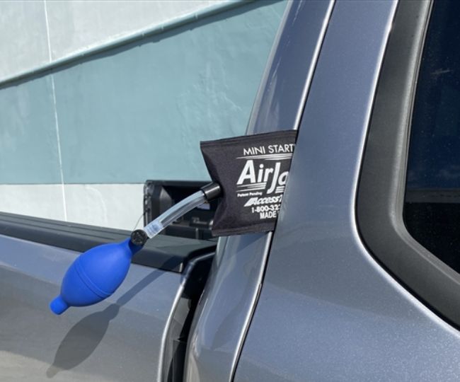 अगर आपकी गाड़ी की चाबी अंदर रह गई है तो इंफ्लेटेबल वेज, जिसे एयर पैक भी कहा जाता है, का इस्तेमाल करके कार का दरवाजा खोला जा सकता है। इसमें कार के ऊपरी हिस्से में इसे दरवाजे और कार के बीच में रखकर हवा भरी जाती है। जैसे-जैसे एयर पैक फूलता है, कार और दरवाजे के बीच में गैप आने लगती है। इसके बाद किसी हुक के सहारे दरवाजे के लॉक को खोला जा सकता है।