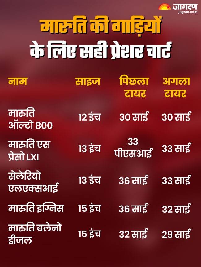 मारुति की गाड़ियों के लिए सही प्रेशर चार्ट