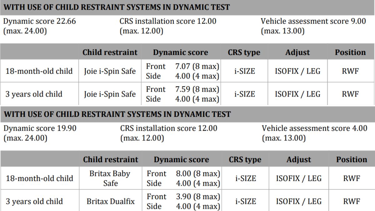 बच्चों की सुरक्षा के मामले में Tata Curvv को 49 में से 43.66 अंक दिए गए हैं। 18 महीने के बच्चों के मुताबिक किए गए टेस्ट में इसे फ्रंट से 8 में से 7.07 और साइड से किए गए टेस्ट के बाद चार में से पूरे चार अंक मिले हैं। जबकि तीन साल के बच्चों के मुताबिक एसयूवी को टेस्ट में फ्रंट से आठ में से 7.59 और साइड से चार में से चार अंक मिले हैं। वहीं Citroen Basalt को 49 में से 35.90 अंक दिए गए हैं। 18 महीने के बच्चों के मुताबिक किए गए टेस्ट में इसे फ्रंट से 8 में से 8 और साइड से किए गए टेस्ट के बाद चार में से पूरे चार अंक मिले हैं। जबकि तीन साल के बच्चों के मुताबिक एसयूवी को टेस्ट में फ्रंट से आठ में से 3.90 और साइड से चार में से चार अंक दिए गए हैं।
