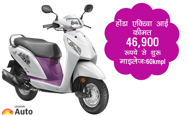 होंडा ने एक्टिवा आई को ख़ास तौर पर गर्ल्स के लिए ही तैयार किया है। एक्टिवा फैमिली वाले इस स्कूटर को चलाना मजेदार है। एक्टिव आई में 109cc का इंजन लगा है जो की 8 bhp की पॉवर और 8.74nm का टार्क देता है। एक्टिवा आई की माइलेज 60 किलोमीटर प्रतिलीटर है। लुक्स के मामले में यह ठीक है लेकिन इसकी परफॉरमेंस बेहतर कही जा सकती है फीमेल राइडर के लिए एक्टिवा आई एक अच्छा स्कूटर साबित हो सकता है। दिल्ली में एक्टिवा आई की एक्स शो रूम कीमत 46,900 रुपये और 47,400 रुपये रखी गयी है।