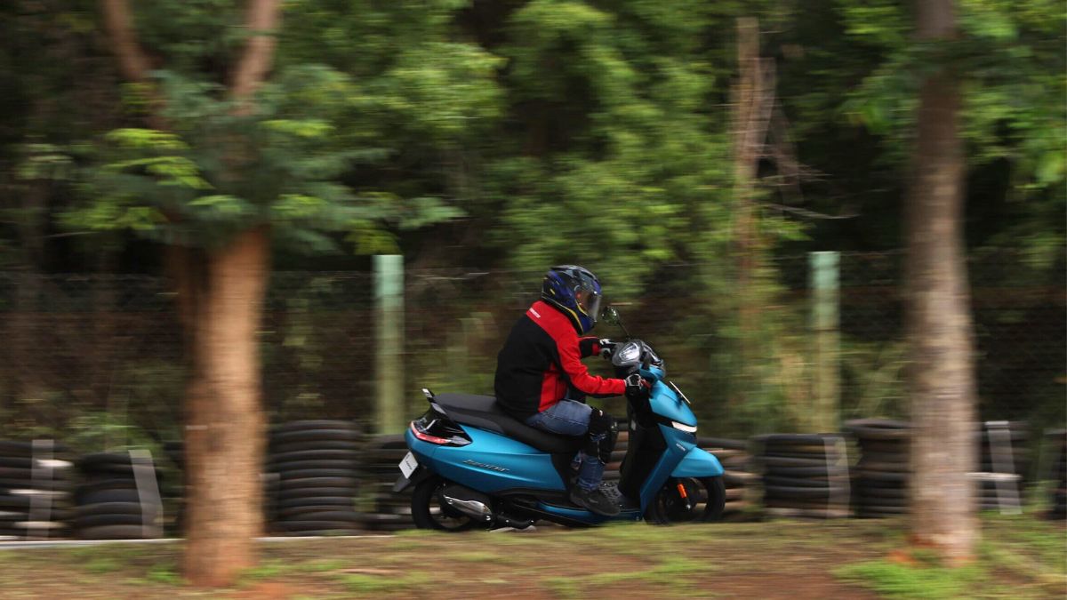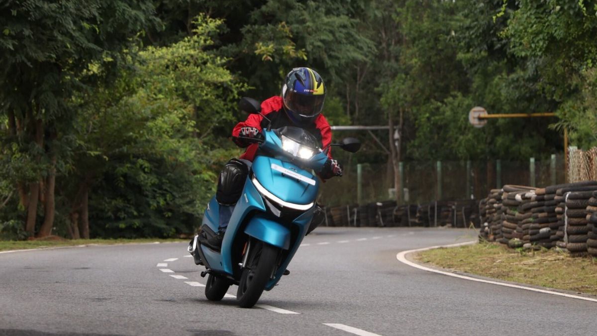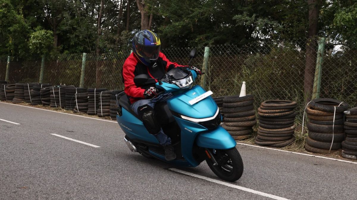 हमने इसे टीवीएस के ट्रैक पर चलाकर देखा और इस दौरान हमने पूरे ट्रैक के कई चक्कर लगाए। ट्रैक पर चलाते हुए हमने इसे टर्न पर काफी झुकाने की कोशिश की और कंपनी की बताई गई टॉप स्पीड 82 किलोमीटर प्रति घंटे से भी ज्यादा स्पीड पर यह आसानी से चला जाता है। हमने इसे 87 किलोमीटर प्रति घंटे की स्पीड तक चलाया और टॉप स्पीड पर भी यह काफी आसानी से हैंडल किया जा सकता है। इसमें डिस्क ब्रेक के कारण ब्रेकिंग भी बेहतर हो गई है, जिससे तेज स्पीड में चलाने पर भी कॉन्फिडेंस बना रहा।