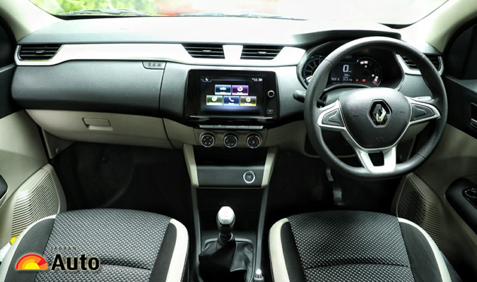 इसके अलावा ट्राइबर में 8 इंच का मल्टीमीडिया टच स्क्रीन दिया गया है जो MediaNav Evolution Connected मल्टीमीडिया सिस्टम से लैस है। यह सिस्टम Android Auto और Apple CarPlay के साथ आता है। टच क्वालिटी भी इसकी सेगमेंट में काफी बेहतर साबित होती है और इसे एक्सेस करना भी काफी आसान है। इसके अलावा कंपनी ने यहां दो ग्लॉव कम्पार्टमेंट्स दिए हैं, जिसमें ऊपर वाला थोड़ा छोटा है। वहीं, नीचे कूल्ड ग्लॉवबॉक्स दिया है। सामान रखने की भी काफी ठीक-ठाक जगह मौजूद है और हेंड ब्रेक के बगल में एक स्टोरेज कम्पार्टमेंट भी मिलता है जो कूल्ड फीचर के साथ आता है। फ्लैट बॉटम स्टीयरिंग व्हील भी काफी अच्छा दिया गया है। इसके अलावा दूसरी पंक्ति (बी-पिलर) और तीसरी पंक्ति (सी-पिलर) के लिए भी कंपनी ने डेडीकेटेड फैन स्पीड कंट्रोलर दिया है, जो AC वेंट्स को कंट्रोल करते हैं। तीसरी पंक्ति पर बैठे यात्रियों के लिए कंपनी ने 12V चार्जिंग शॉकेट भी दिया है।