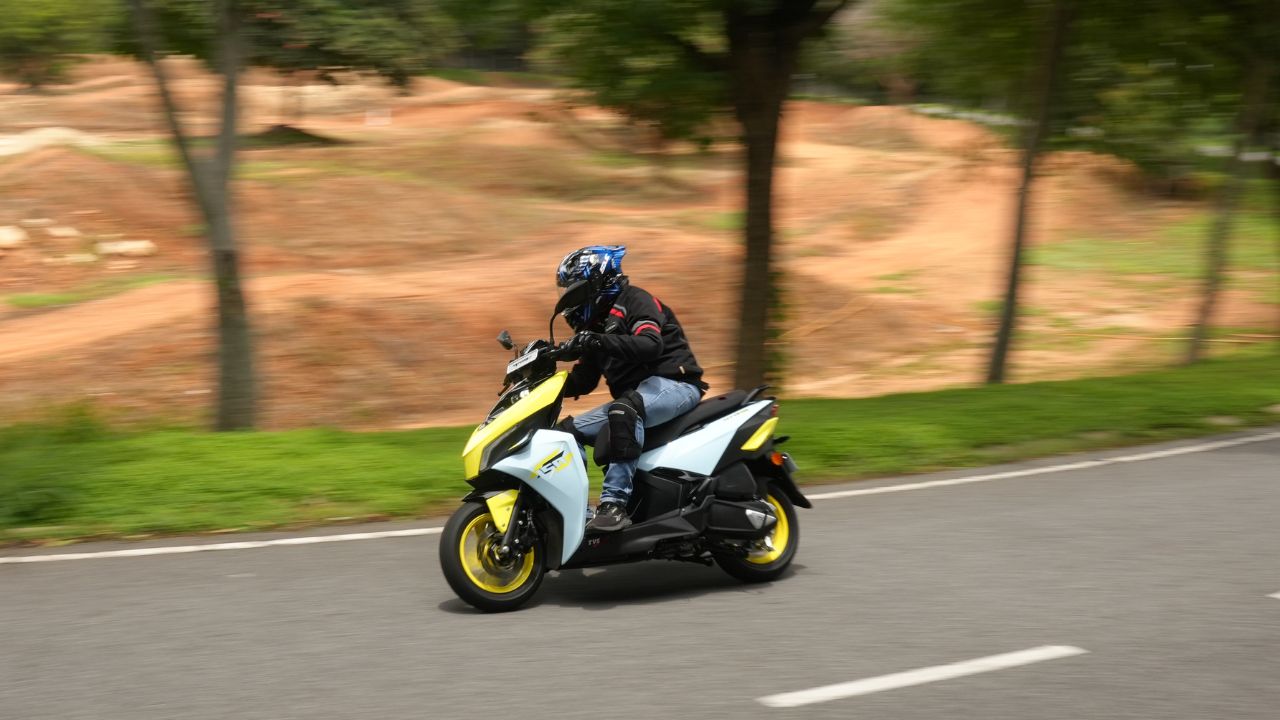 हमने इसे टीवीएस के ट्रैक पर चलाकर देखा और इस दौरान हमने पूरे ट्रैक के कई चक्कर लगाए। ट्रैक पर चलाते हुए हमने इसे टर्न पर काफी लीन करने की कोशिश की और कंपनी की बताई गई टॉप स्पीड 104 किलोमीटर प्रति घंटे से भी ज्यादा स्पीड पर यह आसानी से चला जाता है। हमने इसे 108 किलोमीटर प्रति घंटे की स्पीड तक चलाया और इस स्पीड पर भी इस स्कूटर को काफी आसानी से हैंडल किया जा सकता है। इसमें डिस्क ब्रेक और ट्रैक्शन कंट्रोल जैसे फीचर के कारण ब्रेकिंग भी बेहतर हो गई है, जिससे तेज स्पीड में चलाने के साथ ही टर्न पर भी हमारा कॉन्फिडेंस बना रहा।