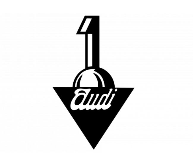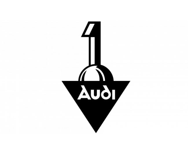 ऑडी नाम का लोगो इसकी कारों के प्री-लॉन्च के समय इस्तेमाल किया गया था, लेकिन जब असल में कारों की लॉन्चिंग की गई तो इसमें एक नया लोगो देखने को मिला। यह काले और सफेद रंगों में डिजाइन किया लोगो था, जिसमें काला त्रिकोण बना था और इसके अंदर कंपनी का नाम दिया गया था। इसके ऊपर नंबर वन जैसा प्रतीक था, जिसका मतलब था कि ऑडी कारें बाजार में सबसे आगे हैं।