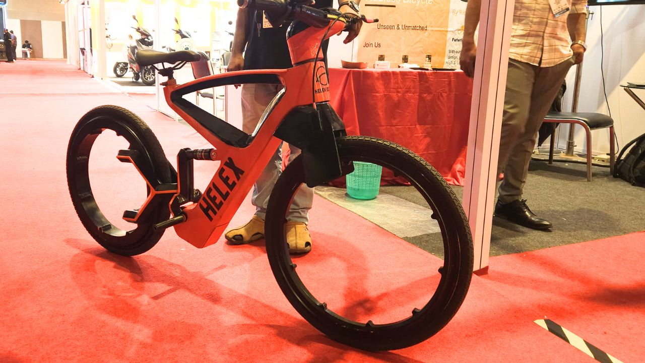Helan Bikes at Auto Expo 2025 ऑटो एक्सपो 2025 के दौरान कई बेहतरीन वाहनों और तकनीक को शोकेस किया जा रहा है। ऐसे में हैदराबाद के इंजीनियर्स की ओर से ऐसी इलेक्ट्रिक साइकिल को दिखाया जा रहा है जिसमें न तो पैडल हैं और न ही स्पोक व्हील्स हैं। इस Electric Cycle की क्या खासियत है। कैसा डिजाइन है। आइए जानते हैं।