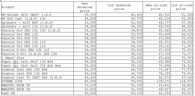 सूत्रों के मुताबिक हीरो मोटोकॉर्प के डीलरशिप्स पर जीरो-डेप्रिशिएशन इंश्योरेंस की पेशकश की जा रही है, जो 5,303 रुपये तक की छूट पर पांच साल की अवधि के लिए है। तो आइए जानते हैं किस मॉडल पर कितनी कीमतें बढ़ाई गई हैं।