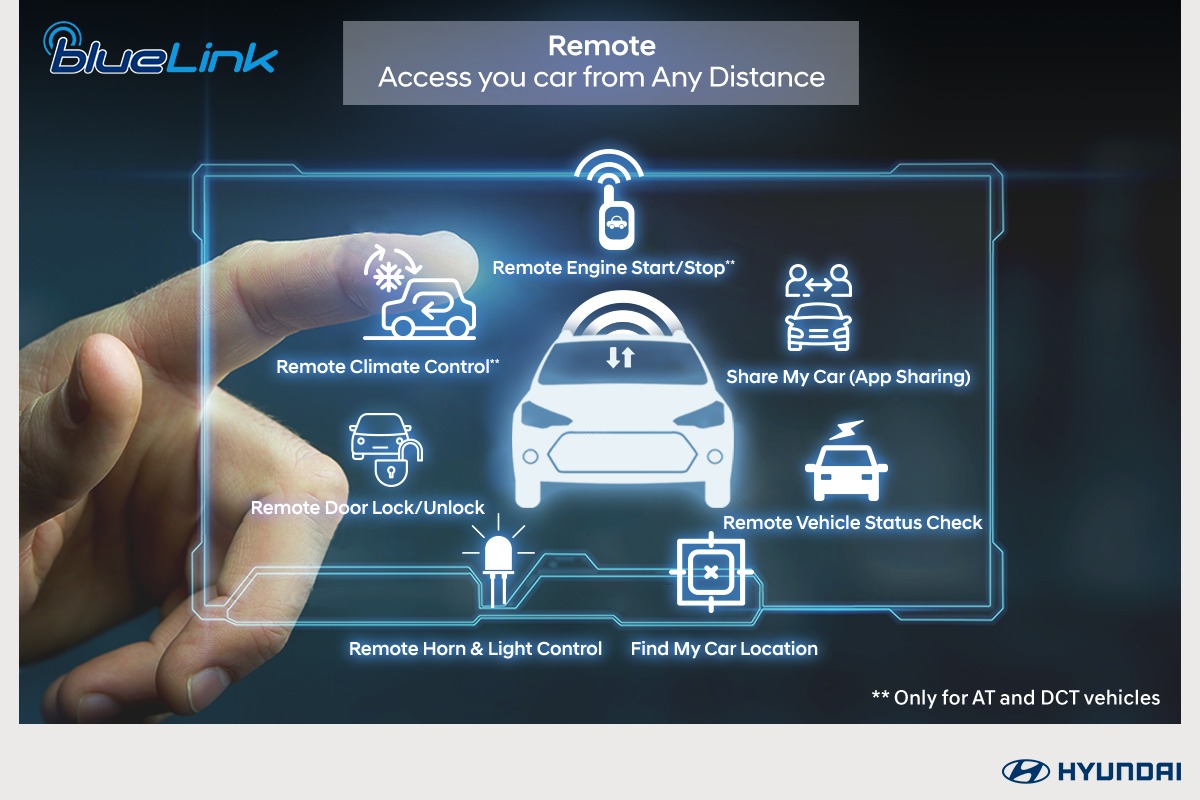 रिमोट इंजन स्टार्ट/स्टॉप, रिमोट क्लाइमेट कंट्रोल, रिमोट डोर लॉक/अनलॉक, रिमोट हॉर्न हॉन्क एंड लाइट, रिमोट व्हीकल स्टेटस, फाइंड माय कार, शेयर माय कार