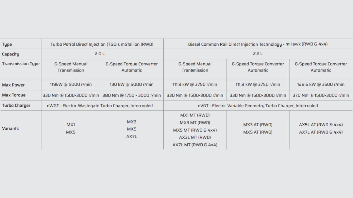 कंपनी की ओर से इसे छह वेरिएंट्स के विकल्प के साथ लॉन्च किया है। इसके 2WD वेरिएंट्स की एक्स शोरूम कीमत 12.99 लाख रुपये से शुरू होती है और इसके टॉप वेरिएंट की एक्स शोरूम कीमत 20.49 लाख रुपये रखी गई है। इसके फोर व्हील ड्राइव वेरिएंट्स की कीमतों की घोषणा होना अभी बाकी है।
