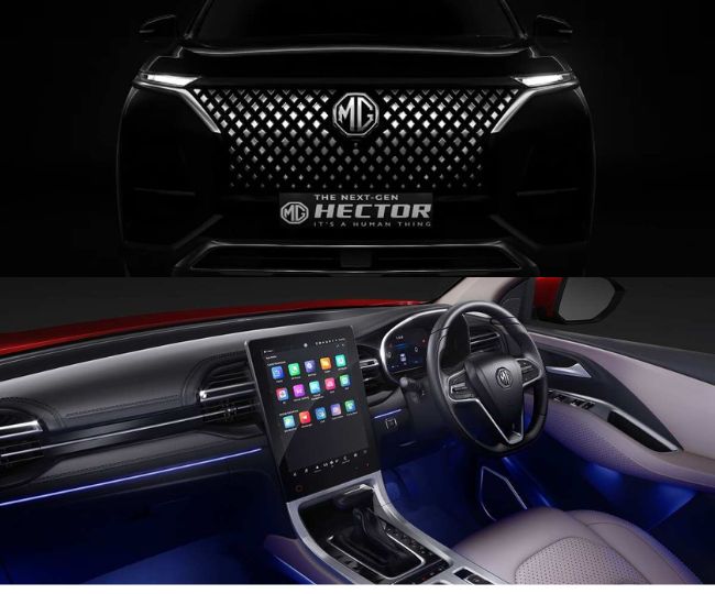 MG Motor India ने नई जनरेशन की Hector SUV की कुछ इंटीरियर फोटो पहले से ही जारी कर दी हैं, जिसमें एक बड़े 14-इंच पोर्ट्रेट HD टचस्क्रीन इंफोटेनमेंट सिस्टम के साथ नया डुअल-टोन केबिन भी दिखता है। इसके साथ ही कंपनी ने एक्सटीरियर का टीजर जारी करते हुए खुलासा कर दिया है। वहीं नई एमजी हेक्टर नई क्रोम ग्रिल और संशोधित एलईडी हेडलैंप और टेल-लैंप के साथ आएगी। इसमें स्लिमर एयर-डैम के लिए क्रोम राउंड होगा, और शीर्ष पर एलईडी डीआरएल के साथ नया स्प्लिट हेडलैंप सेटअप और इसका हेडलैंप यूनिट के निचले बम्पर पर होगा।