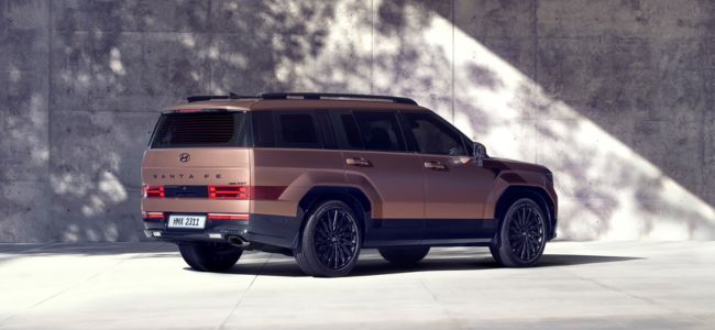 नई Hyundai Santa Fe अपने वर्तमान पीढ़ी के मॉडल से पूरी तरह से अलग दिखती है, क्योंकि इसमें अब बॉक्सी प्रोपोर्शन मिलता है। इस एसयूवी में एक अपराइट नोज, एच-आकार के एलईडी डीआरएल, लंबा व्हीलबेस, ग्रिल पर एच-आकार की आकृति और सामने बम्पर पर एयर डैम है दिए गए हैं। इसके अलावा, इसमें पीछे की तरफ एच-आकार के टेल-लैंप भी दिए गए हैं। नई Hyundai Santa Fe में चारों ओर मोटी बॉडी-क्लैडिंग और मल्टी-स्पोक अलॉय व्हील दिए गए हैं।