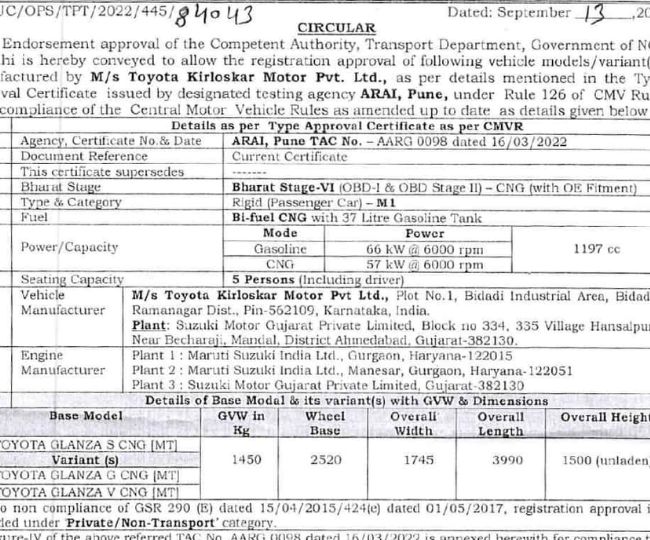 लॉन्च से पहले Toyota Glanza CNG के फीचर्स हुए लीक, जानें डिटेल्स