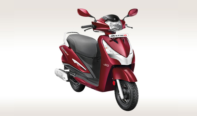 - Hero Destini 125 के ड्रम ब्रेक LX वेरिएंट की दिल्ली एक्स-शोरूम कीमच 55,080 रुपये है। वहीं, इसके ड्रम ब्रेक अलॉय व्हील VX वेरिएंट की दिल्ली एक्स-शोरूम कीमच 57,930 रुपये है।