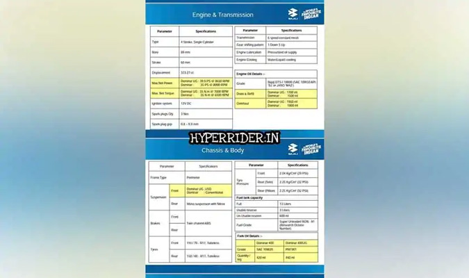 नई Bajaj Dominar के इंजन स्पेसिफिकेशन्स हुए ऑनलाइन लीक, अगले महीने होगी लॉन्च