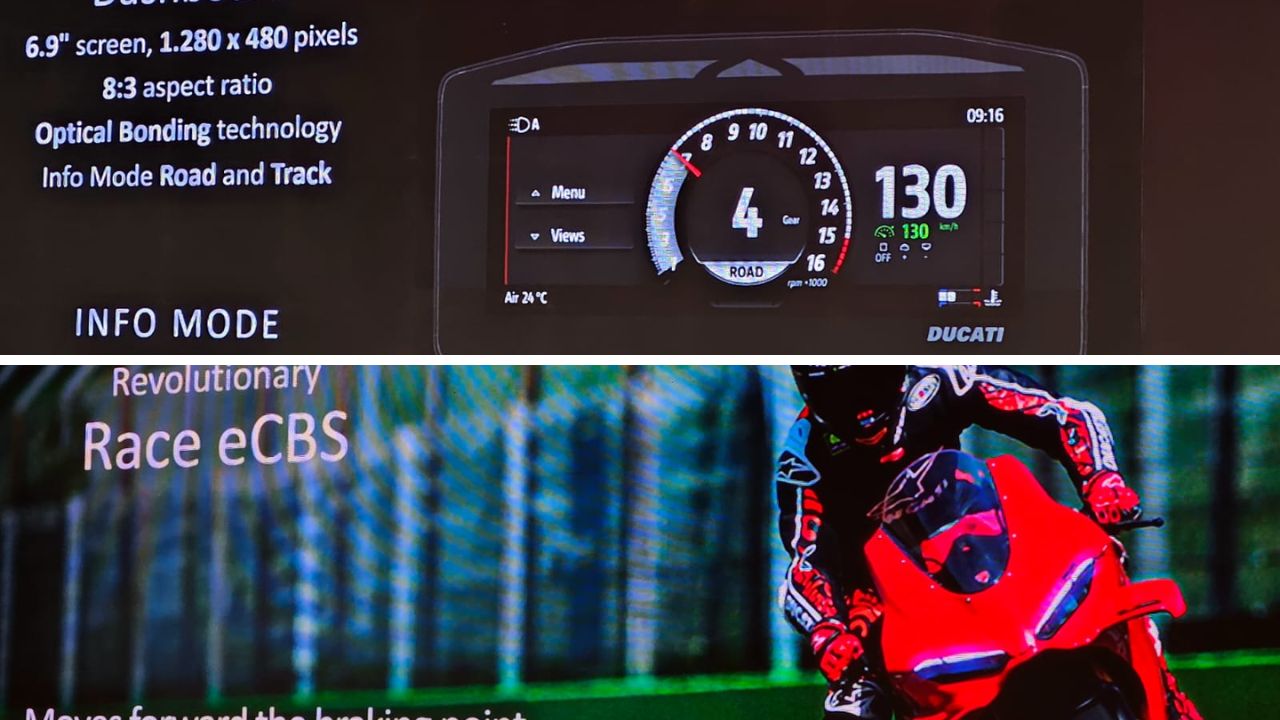 बाइक में कई बेहतरीन फीचर्स को ऑफर किया गया है। इसमें डबल डिस्क ब्रेक, राइडिंग के लिए कई मोड्स के साथ ही पावर मोड्स, रेस eCBS, डुकाटी ट्रैक्शन कंट्रोल, डुकाटी विली कंट्रोल, डुकाटी स्लाइड कंट्रोल, इंजन ब्रेक कंट्रोल, डुकाटी ब्रेक लाइट, चेन गार्ड, डुकाटी पावर लॉन्च, क्विक शिफ्टर, एलईडी लाइट्स, एलईडी डीआरएल, स्टेयरिंग डैंपर, ऑटो ऑफ इंडीकेटर, एंटी थेफ्ट, टीपीएमएस के साथ टेंपरेचर सेंसर, यूएसबी पोर्ट, टर्न बाय टर्न नेविगेटर, क्रूज कंट्रोल, इलेक्ट्रॉनिक सस्पेंशन, 6.9 इंच डिजिटल इंस्ट्रूमेंट क्लस्टर, रोड और ट्रैक इंफोरमेशन मोड्स जैसे कई फीचर्स को दिया गया है।