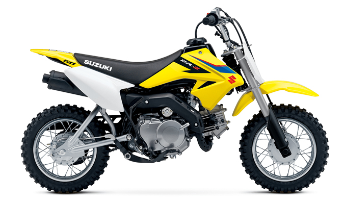 2019 Suzuki DR-Z50 डर्ट बाइक केवल Suzuki की चैम्पियनशिप येलो कलर स्कीम में उपलब्ध है।