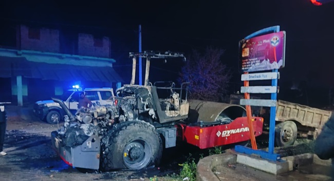 जेसीबी, रोड रोलर, ट्रैक्टर जलकर खाक