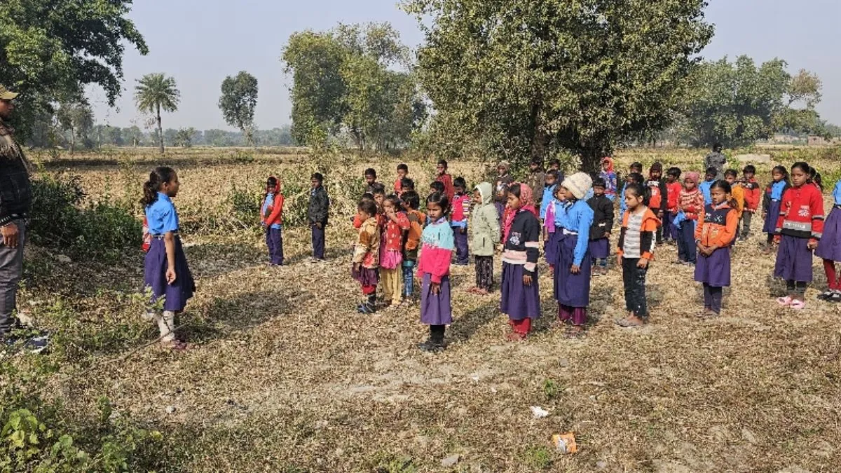 दो कमरों में चल रहा स्कूल, ठिठुरन भरी ठंड में जमीन पर शिक्षा ग्रहण करने को मजबूर बच्चे