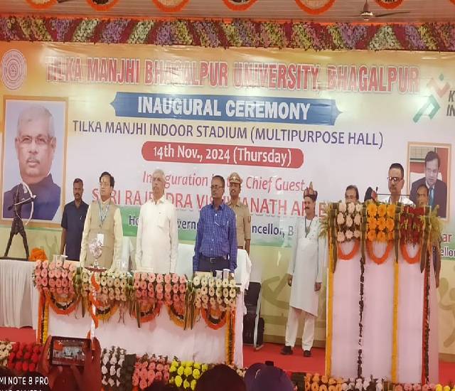 जागरण संवाददाता, भागलपुर। तिलकामांझी विश्वविद्यालय में खेलो इंडिया द्वारा निर्मित बहुउद्देशीय प्रशाल स्टेडियम का गुरुवार को कुलाधिपति बिहार के राज्यपाल राजेंद्र विश्वनाथ आर्लेकर ने उद्घाटन किया। इससे पहले राज्यपाल ने स्वास्थ्य केंद्र में योगा तथा फिजियोथेरेपी सेंटर के नए भवन का शिलान्यास भी किया। इस कार्यक्रम में डीएम, SSP, SDM, City डीएसपी, लॉ एंड ऑर्डर डीएसपी सहित अन्य पदाधिकारी मौजूद रहे। वहीं कार्यक्रम के पहले बार-बार राष्ट्रगान के ट्रायल पर राजद प्रवक्ता भड़क गए।