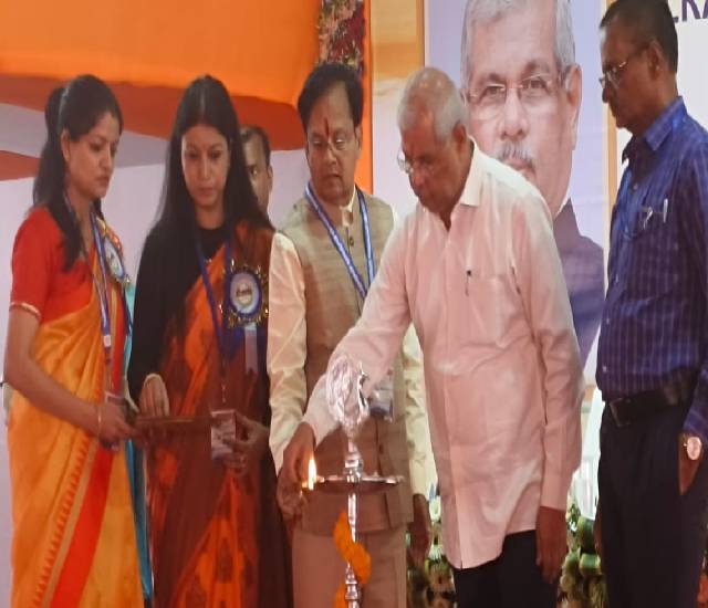 दीप प्रज्वलित कर कार्यक्रम की विधिवत शुरुआत करते कुलाधिपति और कुलपति