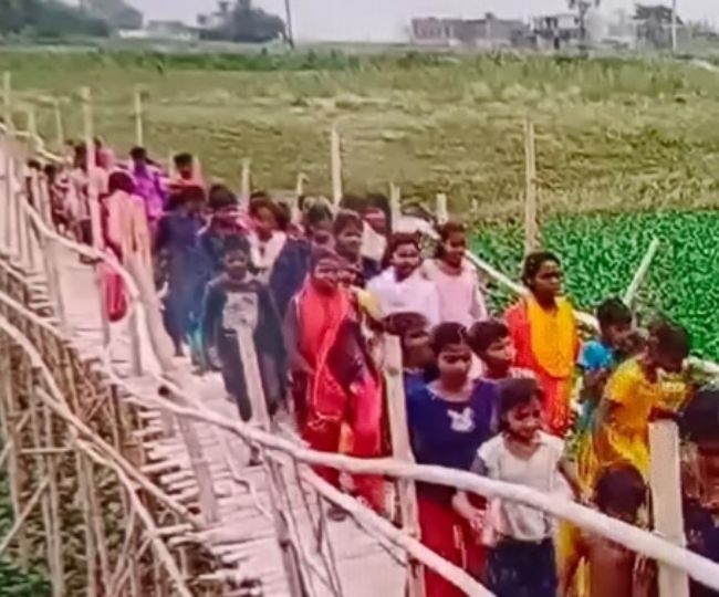 नाथनगर (भागलपुर), जागरण संवाददाता। भागलपुर के नाथनगर में बीते एक सप्ताह पूर्व एक दुल्हन की विदाई की खूब चर्चा हो रही है। सोशल मीडिया पर विदाई का वीडियो वायरल हो रहा है। दरअसल, इस गांव में पक्का पुल नहीं है। गांव में आने-जाने के लिए लोगों को चचरी पुल का सहारा लेना पड़ता है।