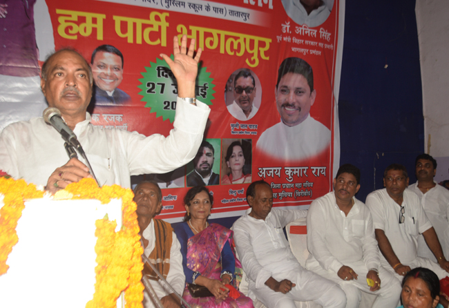 हिंदुस्तानी अवाम मोर्चा (सेक्युलर) का तातारपुर स्थित जैन मंदिर में आयोजित सम्मेलन में कार्यकर्ताओं को संबोधित करते हुए पार्टी के प्रदेश महासचिव राम विलास प्रसाद ने कहा कि बिहार के बारह जिलों आइ बाढ़ से 146 लोगों की मौत डूबने से हो गई है। बाढ़ में कई घर विलीन हो चुका है। बाढ़ पीडि़तों के लिए सरकार द्वारा जो राहत कार्य चल रहा है वह पर्याप्त नहीं है। सूबे में अपराध बढ़ गया है। चोरी, डकैती, हत्या, दुष्कर्म जैसी संगीन घटना बढ़ रही हैं। भागलपुर अपराधियों का अड्डा बन गया है। महिलाएं घर से बाहर निकल नहीं पा रही हैं।