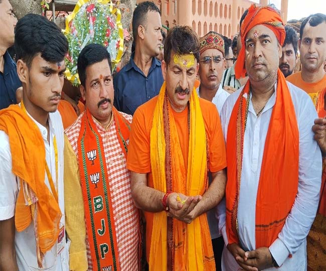 बाबाधाम की कांवर यात्रा से पहले अजगैवीनाथ धाम में संकल्प करते सांसद मनोज तिवारी।