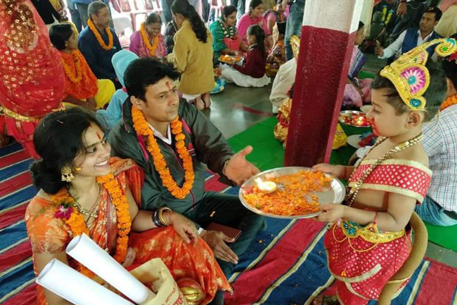 वैदिक मंत्रोच्चार के बीच जब सभी बच्चे अपने माता-पिता का पूजन कर रहे थे। उस समय सभी की आंखें छलक गईं। समारोह में अद्भूत नजारा तब दिखा जब संतान अपने माता-पिता के सिर पर तिलक लगाकर परिक्रमा कर रहे थे। माता-पिता को फूलों का माला पहनाया गया। वैदिक रीति से पूजन हुई। चरण पर सिर रखकर आशीर्वाद मांगा। मां-पिता की आरती की। अंत में मां-पिता ने अपने पहने हुए माला को खोलकर बच्चे को पहनाकर उन्हें गले लगा लिया। यह दृश्य सबके हृदय को छू गया। सभी लोगों के आंखों से आंसू छलक गए। मार्मिक अनुभूति हुई।