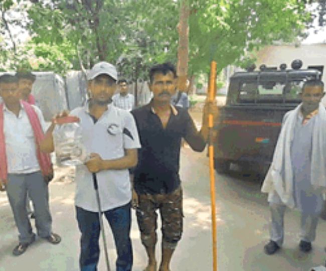 रसल वायपर को जंगल में छोड़ने के लिए ले जाती वन विभाग की टीम l जागरण