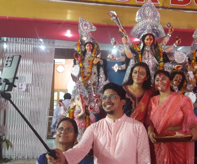 - इसी के साथ सिंदूर खेला होता है। पूजा के बाद प्रसाद वितरण किया जाता है।