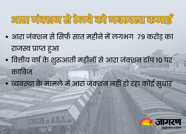आरा जंक्शन से इस वितीय वर्ष 2024-2025 में एक अप्रैल से 30 अक्टूबर तक सिर्फ सात महीने में 78 करोड़ 76 लाख रुपये का राजस्व प्राप्त हुआ है। उसके बावजूद भी कई ट्रेनों का ठहराव नही दिया जा रहा है। वित्तीय वर्ष के शुरुआती महीनों से आरा जंक्शन टॉप 10 पर काबिज होकर रेलवे को खुश कर दिया है।