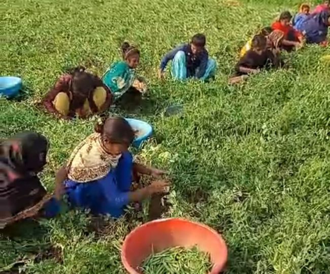 (बिहार में भोजपुर के खेत में मटर तोड़ती महिलाएं।)