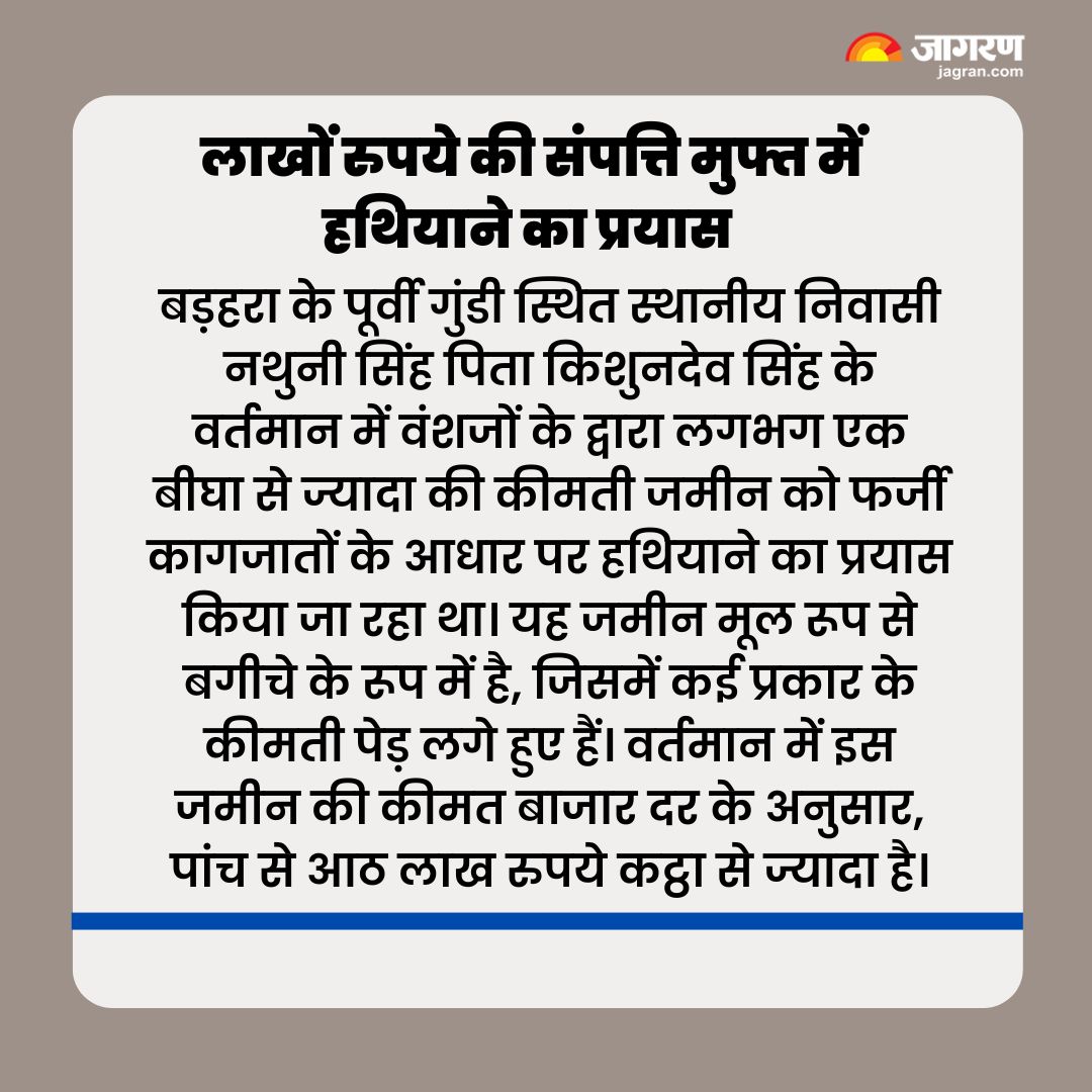 यह पूरा मामला भोजपुर जिले के बड़हरा प्रखंड क्षेत्र का है। बड़हरा के गुंडी मौजा में थाना नम्बर 57, खाता संख्या 2189, खेसरा संख्या 6542 और रकबा 68 डिसमिल का है। स्थानीय निवासी नथुनी सिंह पिता किशन देव सिंह के नाम पर इस जमीन की जमाबंदी कर दी गई थी। इस मामले को लेकर वाद संख्या 12/2021 बड़हरा अंचलाधिकारी बनाम महेंद्र सिंह के बीच भोजपुर एडीएम के न्यायालय में चल रहा था।