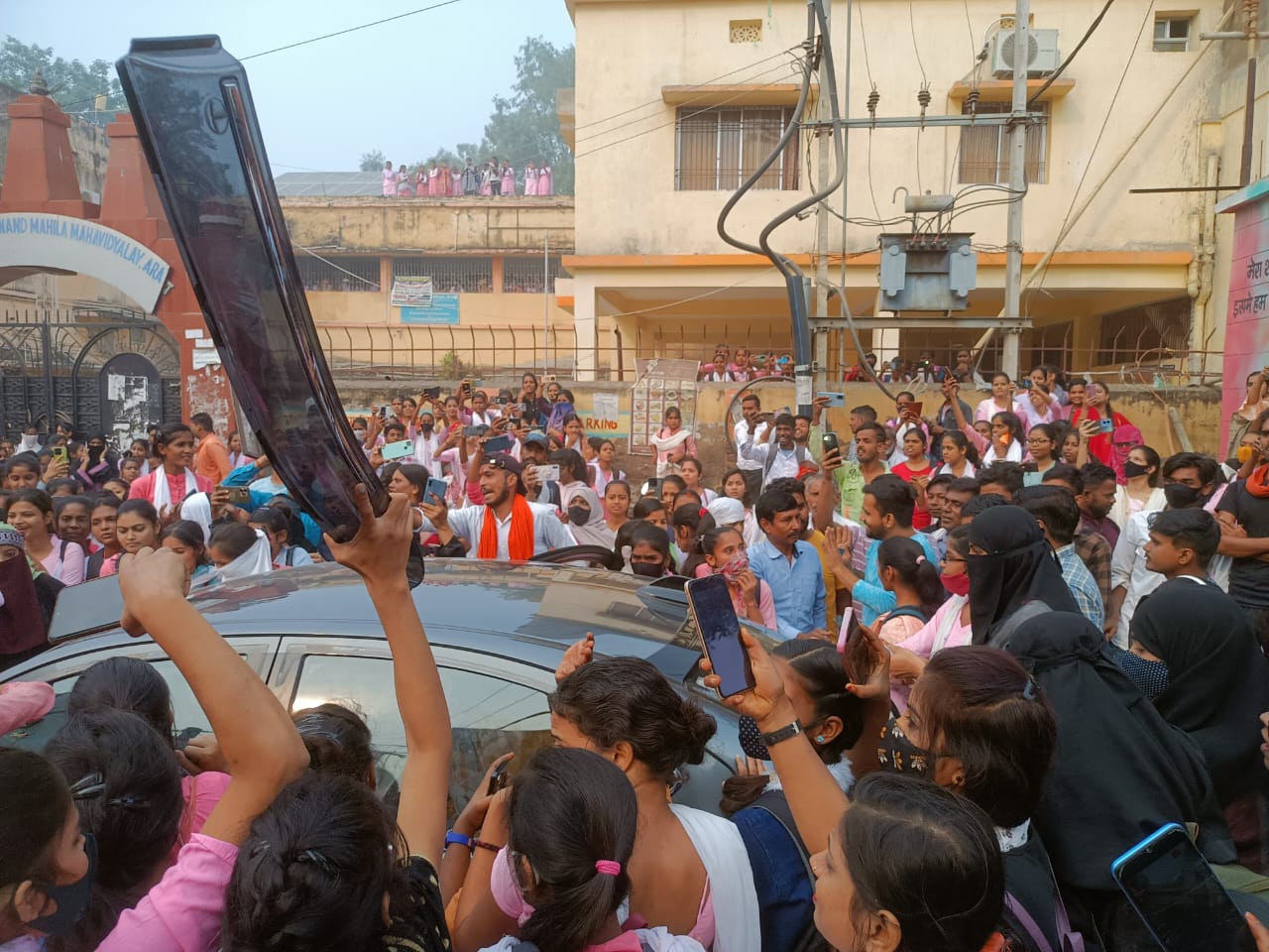कॉलेज के अंदर से सभी छात्राएं सड़क पर आ गई। कॉलेज गेट के पास ही शहीद भवन-नागरी प्रचारिणी रोड को जाम कर हंगामा शुरू कर दिया। छात्राओं का गुस्सा रास्ते से गुजरने वाली गाड़ियों पर भी उतरा। कार समेत अन्य गाड़ियों को तोड़फोड़ कर क्षतिग्रस्त कर दिया गया।