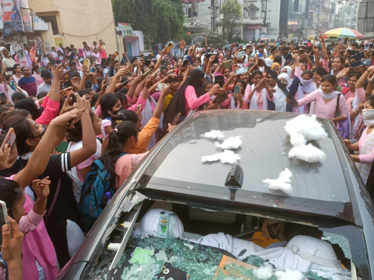 इस दौरान रास्ते से गुजरने वाली गाड़ियों के शीशे भी तोड़ डाले। सड़क जाम और हंगामा होने के कारण परिचालन पूरी तरह अवरूद्ध हो गया। टाउन और नवादा थाना की पुलिस प्रिंसिपल से बात कर आक्रोशित छात्राओं को समझाने में लगी हैं।