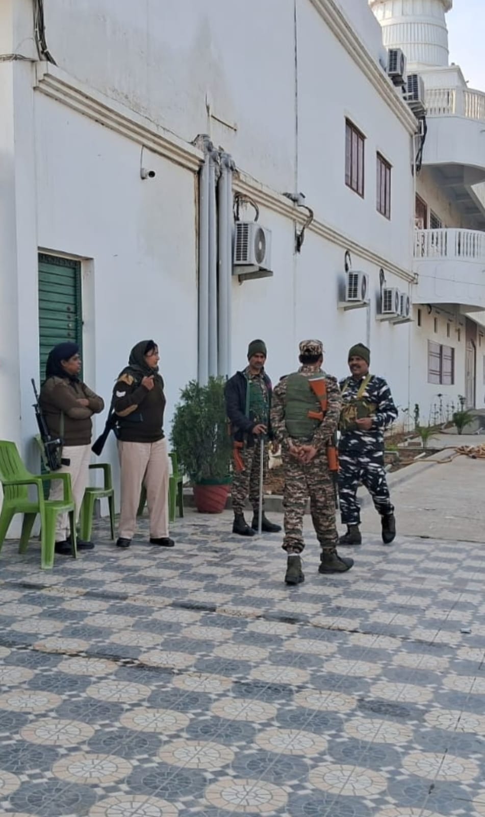 विधायक आवास के बाहरी हिस्से में तैनात बल