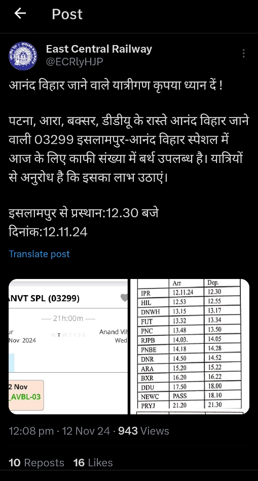 जागरण संवाददाता, आरा। हाजीपुर रेलवे जोन के पांचों रेल मंडल में अब फेसबुक और एक्स पर ट्रेन की खाली सीट के बारे में जानकारी दी जाएगी।