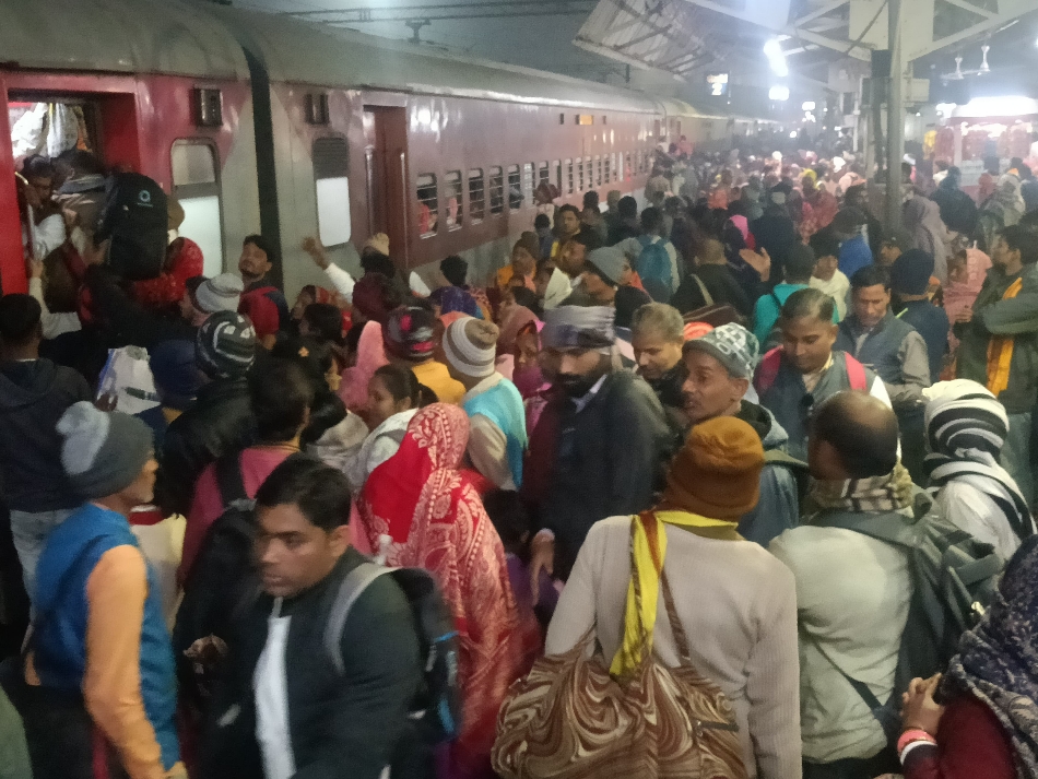 प्रयागराज जाने वाली ट्रेनों में आरक्षण का कोई मतलब नहीं रह गया है। हालात ये हैं कि चढ़ पाओ तो जहां जगह मिले, खड़े होकर-बैठकर जाओ। मंगलवार को आरा स्टेशन पर कुछ ऐसा ही नजारा दिखा।