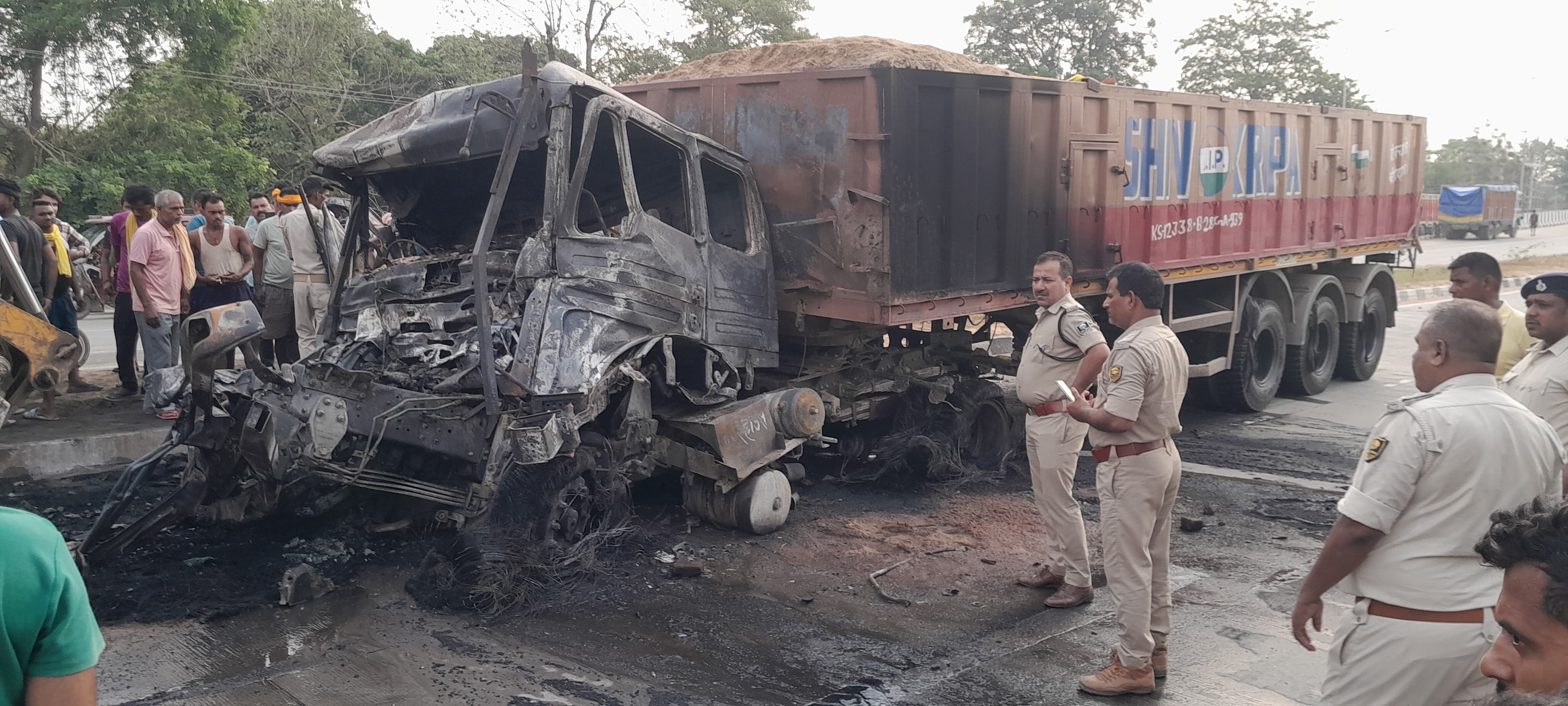 पटना-बक्सर NH पर हुई दिल दहलाने वाली घटना, टायर फटने से ट्रक में लगी भयंकर आग; जिंदा जलकर चालक की मौत