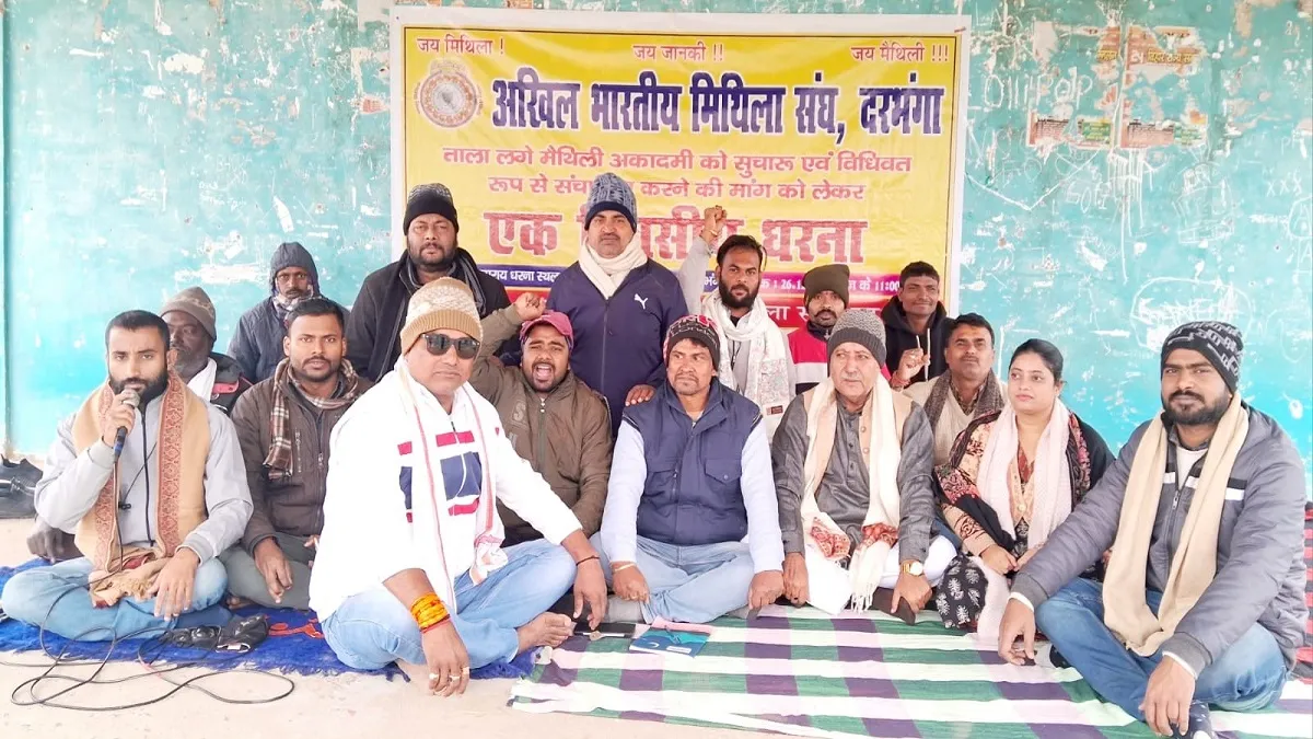 दरभंगा में अखिल भारतीय मिथिला संघ ने आयुक्त कार्यालय के समक्ष मैथिली अकादमी को फिर से खोलने और प्रतिनियुक्त कर्मचारियों को बहाल करने की मांग को लेकर ध ...और पढ़ें