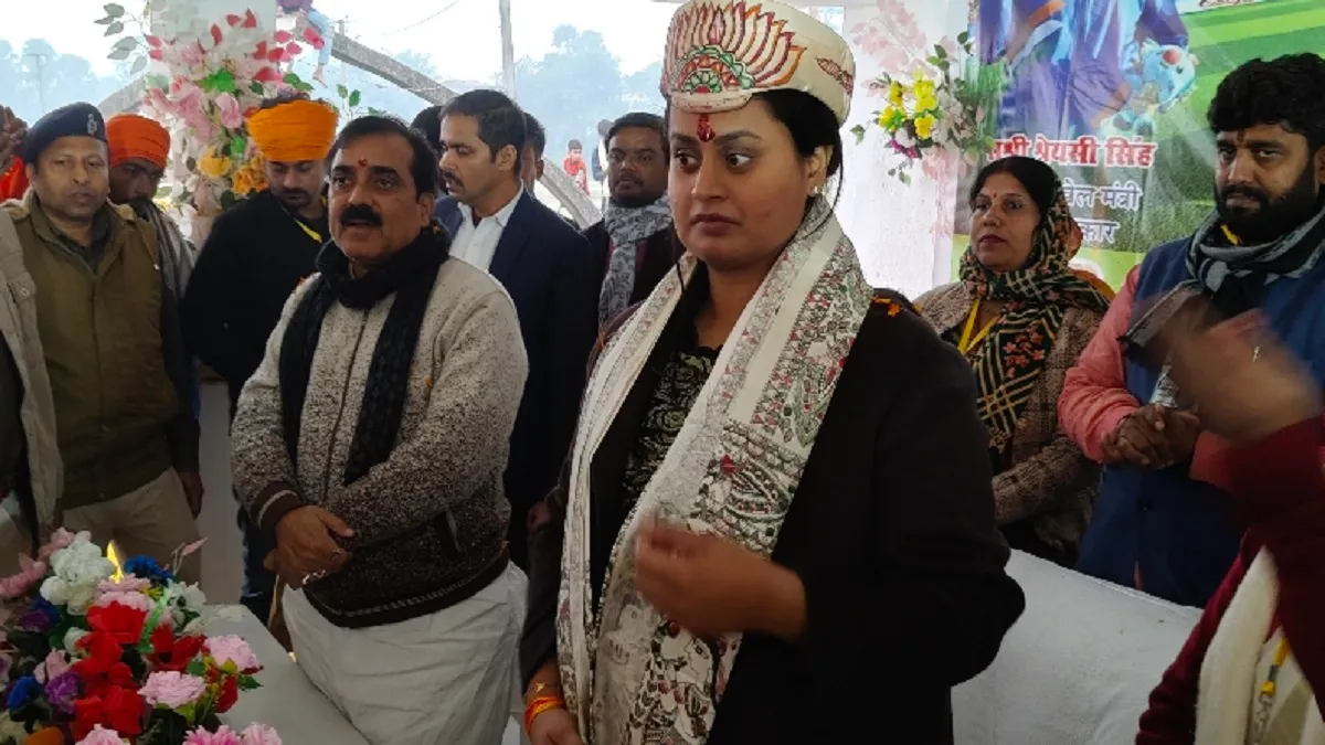 यहां के लोगों में खेल के प्रति उत्साह एवं समर्पण देखकर बहुत गौरवान्वित महसूस करती हूं। इसके पूर्व खेल मंत्री श्रेयसी सिंह को आयोजन समिति के अध्यक्ष मिर्जा वसीम राजा बेग, भाजपा नेता विपिन पाठक आदि ने मिथिला की परंपरा के अनुसार पाग, चादर एवं माला से सम्मानित कर स्वागत किया।