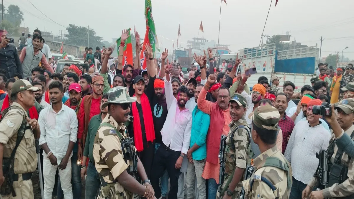 भाजपा की जीत पर खुशी जाहिर करते एनडीए कार्यकर्ता। जागरण