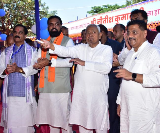 Bihar News मुख्यमंत्री नीतीश कुमार शुक्रवार को दरभंगा के कबड़ाघाट स्थित मिथिला शोध संस्थान में विभिन्न प्रकार की योजनाओं का शिलान्यास किया। इसके बाद योजनाओं संबंधित स्टालो का निरीक्षण किया। उपस्थित अधिकारियों से इसके बारे में बातचीत की और इसके बाद सड़क मार्ग से मनीगाछी के लिए प्रस्थान कर गए। वहां जनसंवाद में हिस्सा लेंगे।