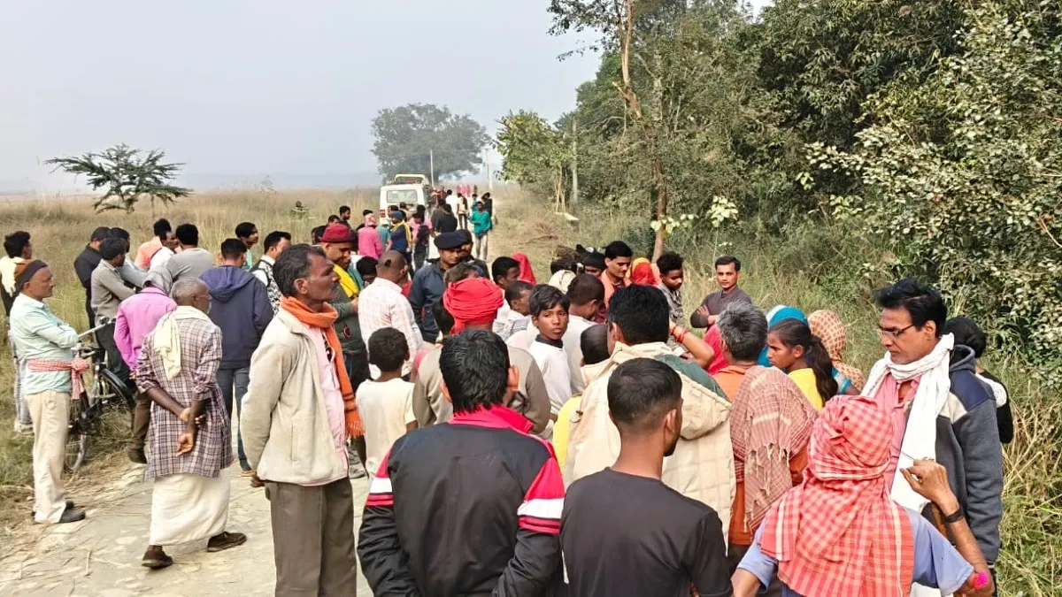 घटनास्थल पर जमा ग्रामीणों की भीड़। जागरण