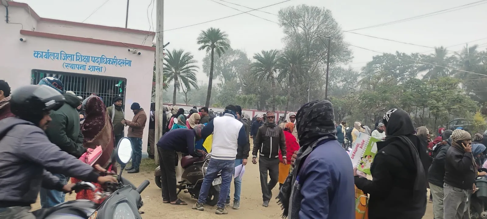 दरभंगा में भीषण ठंड के बावजूद आवेदन लेकर पहुंचे शिक्षक, अब मिलेगी आनलाइन जानकारी