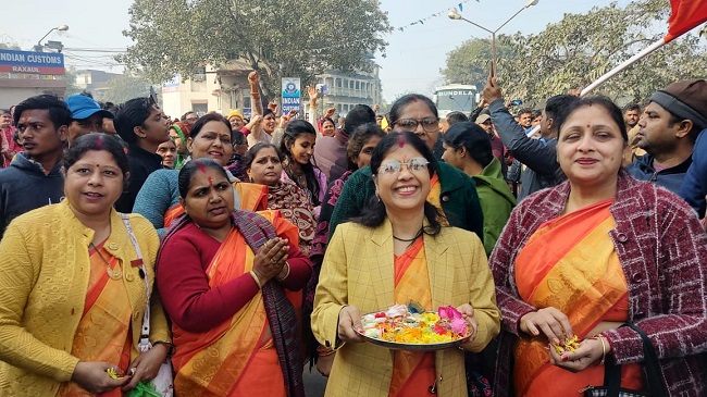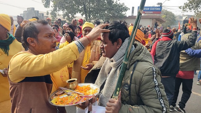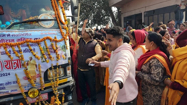बता दें कि भार यात्रा का कलावा रथ भारत में आठ किलोमीटर अंदर तक आ गया है। श्रीराम मंदिर प्राण प्रतिष्ठा यज्ञ से पूर्व 4 जनवरी को रामजानकी मंदिर, जनकपुर धाम के उत्तराधिकारी महंथ राम रोशन दास वैष्णव भार लेकर श्रद्धालुओं के साथ पहुंचे हैं।